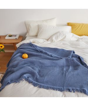 Solid color Cotton Waffle Knitted Blanket With Tassle