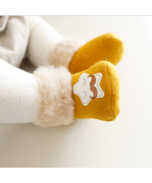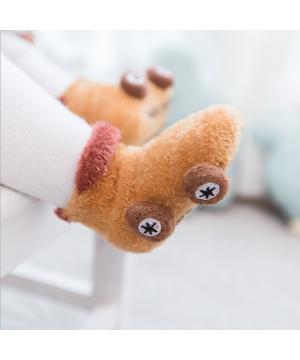 Cartoon Eyelash Yarn Polyester Baby Sock With Anti-Slip Print