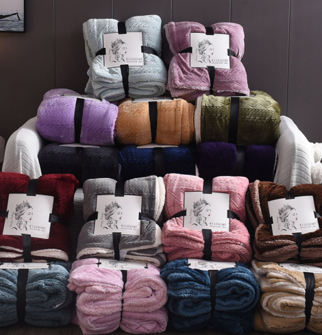 Cut Flowers Jacquard Super Soft 100% Polyester Flannel Fleece Sherpa Blanket