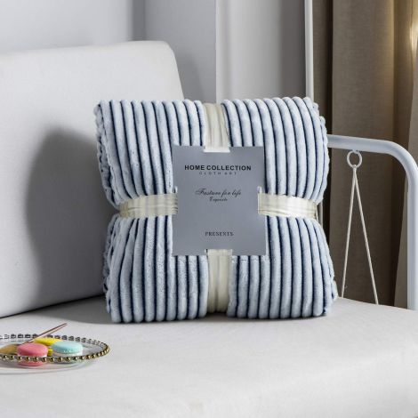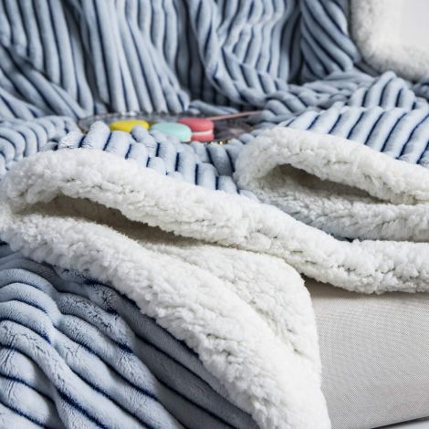 Blue 3D Jacquard Throw Super Soft 100% Polyester Flannel Back Sherpa Blanke