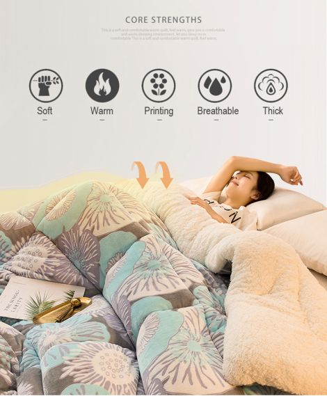 Polyester Flannel Fleece and Sherpa Warm Comforter Quilt