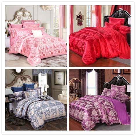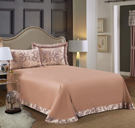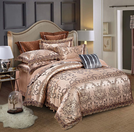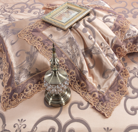 Wholesale luxury 100% Cotton Jacquard Bedding Set with Lace Edge