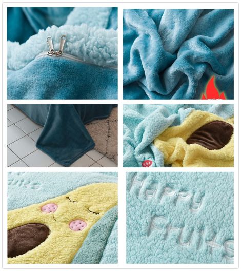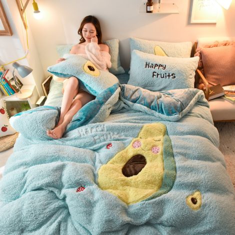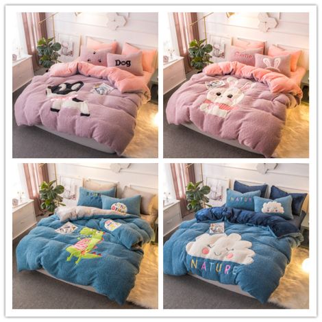 Cartoon Embroidered Polyetser Sherpa Fleece Bedding Set