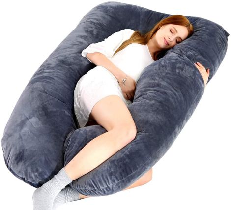 Utra Soft Velvet Fabric Pregnancy And Nursing Pillow white U Shaped Full Body Pillow for Back Support