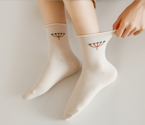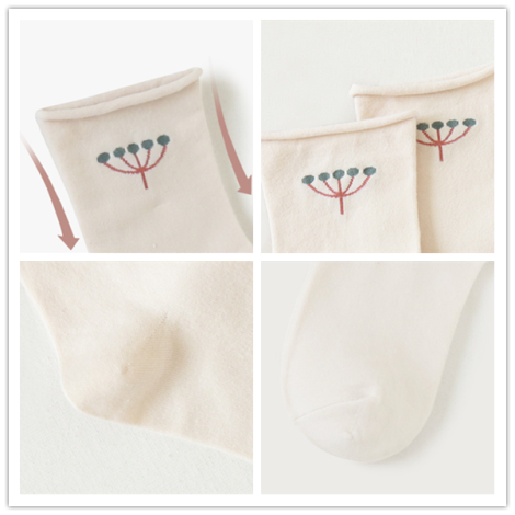 High Quality Solid Combed Cotton Embroidery Adult Sock