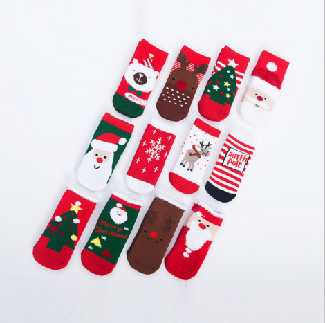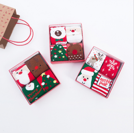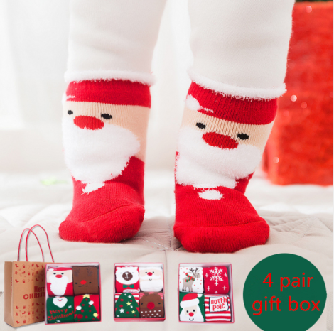 Thick Winter Cotton Jacquard Christmas Kids 4Pair Gift Sock