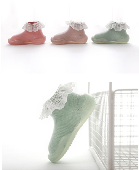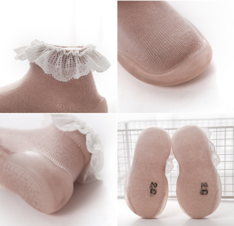 Kids Cute Cotton Silcon Anti-slip Toddler socks with lace