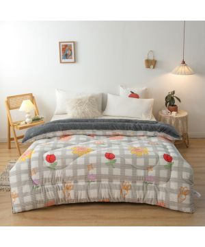 Polyester Flannel Fleece and Sherpa Warm Comforter Quilt